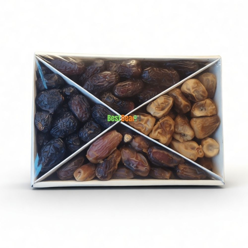 প্রিমিয়াম মিক্স খেজুর। যেখানে পাচ্ছেন ৪ টা প্রিমিয়াম খেজুরের কম্বো বক্স।